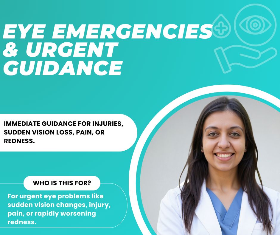 Immediate guidance for injuries, sudden vision loss, pain, or redness.