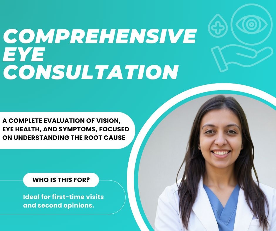 A complete evaluation of vision, eye health, and symptoms, focused on understanding the root cause. Ideal for first-time visits and second opinions.